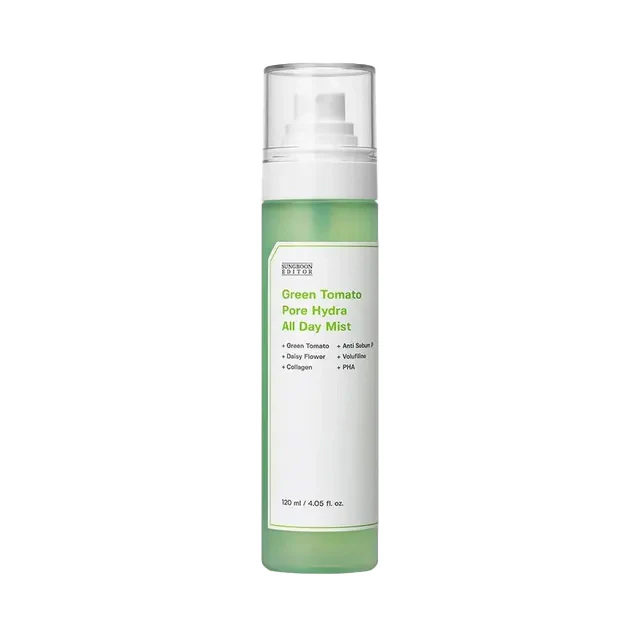Sungboon Editor Green Tomato Pore Hydra All Day Mist — лёгкий увлажняющий мист с экстрактом зелёного помидора, который помогает поддерживать водный баланс кожи в течение дня. Формула направлена на то, чтобы увлажнить, освежить и смягчить кожу без ощущения липкости.